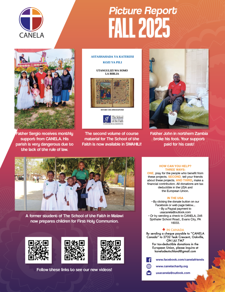 I hope you enjoyed a relaxing summer! It’s usually a quieter time for me to catch up on office work. In my last letter, I mentioned our efforts to create informative videos about our work. We’ve now produced five, accessible via links in the attached picture report. I also shared that we translated the first volume of our School of Faith manuals into Swahili. The second volume is out, and the third is being edited, which is vital for our work in Southeast Africa where Swahili is widely spoken.